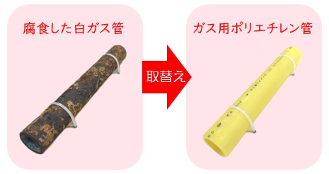 令和6年4月からお客さまの敷地内に埋設されている亜鉛メッキ鋼管(通称:白ガス管)の取替え工事費の一部を補助する制度を開始しました。