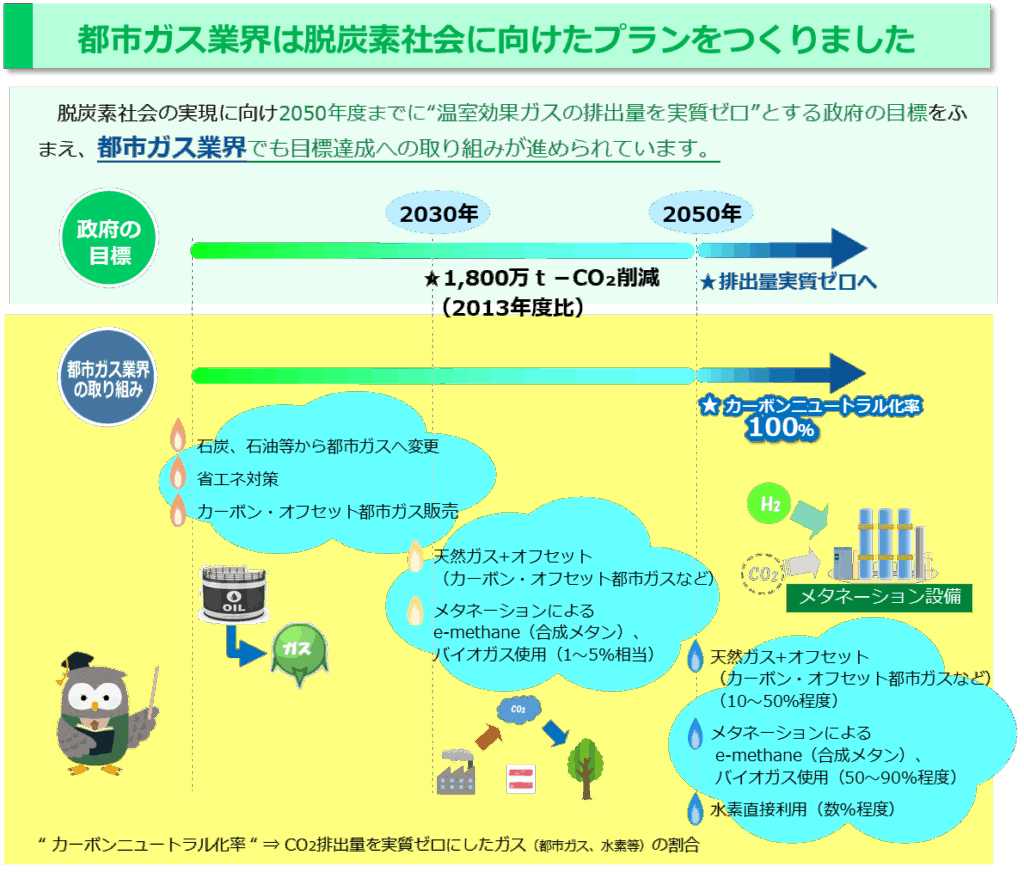 都市ガス業界が目指す2050年の未来像を示した「ガスビジョン2050」と、