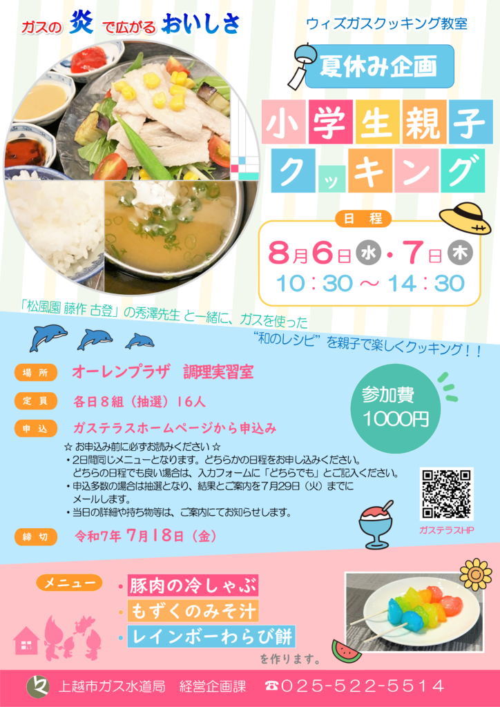 ガスの炎を使った簡単、美味しい、夏のクッキングを親子で