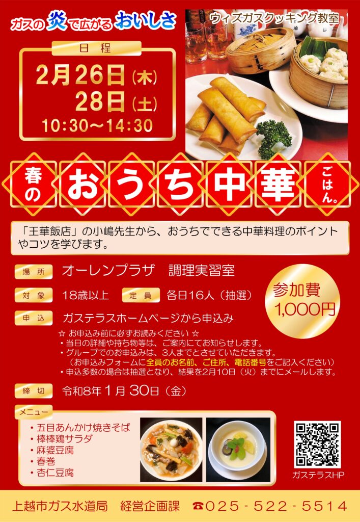 ガスコンロを使って、「春のおうち中華ごはん。」をテーマに開催します。