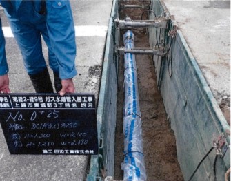 工事箇所は、東城町3丁目他地内の主要地方道高田停車場線での工事であり、既設管が電線共同溝工事の支障となるため移設を行うガス水道管入替工事であった。