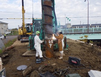 左岸 A1橋台 N=1基、回転圧入鋼管杭φ500