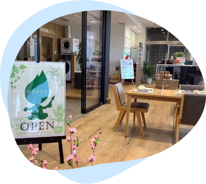 リビングのような木の温もりが心地よい空間で、ガスのある快適な暮らしを体感してみませんか。