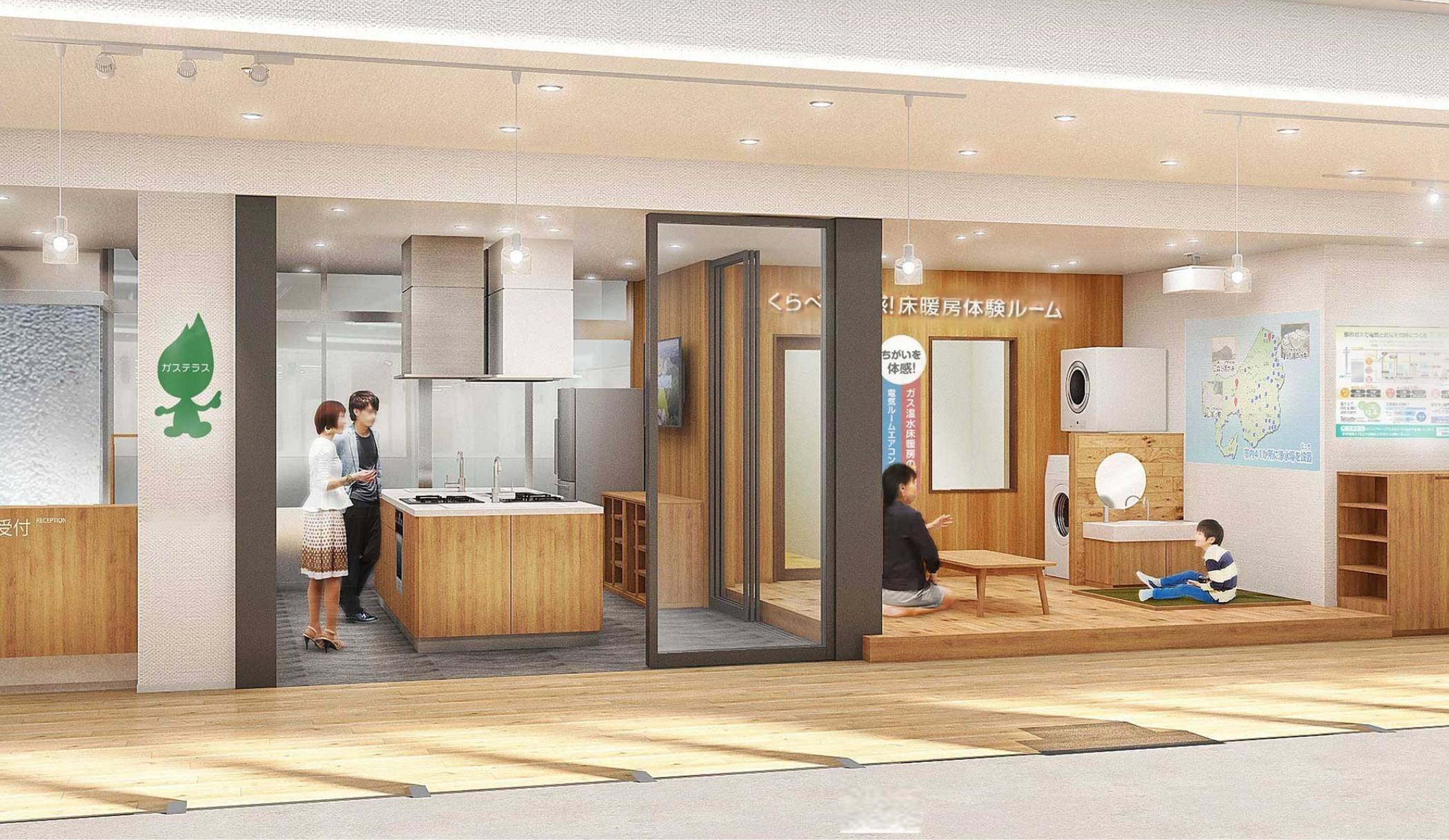 ガス水道局庁舎内に設置のショールーム「ガステラス」は、都市ガスをご利用のみなさまや住宅の新築などに当たりこれから都市ガスの利用を検討されているみなさまに、安全で快適な最新のガス機器や設備をご紹介し、体感していただくショールームです。