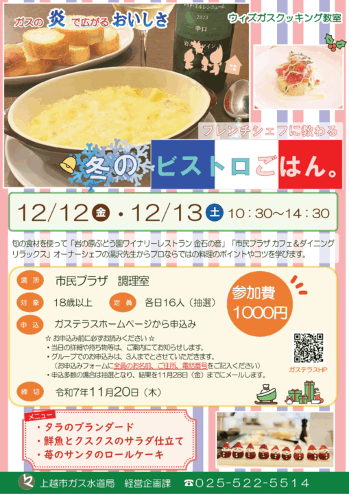 ウィズガスクッキング教室 冬のビストロごはん。の参加者を募集します!
