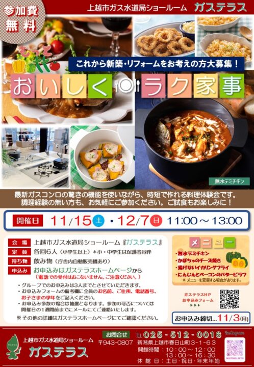 もっとおいしくラク家事体験会チラシ(11月・12月)