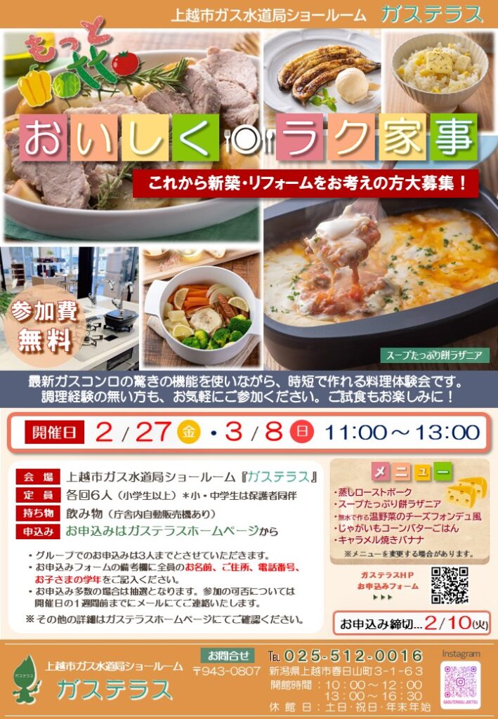 もっとおいしくラク家事体験会チラシ(2月・3月)
