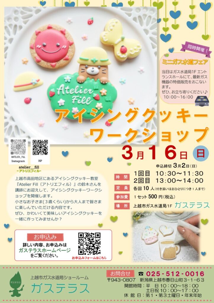 上越市のアイシングクッキー教室『アトリエフィル』代表の鈴木さんを講師にお迎えしてアイシングクッキーワークショップを開催します。