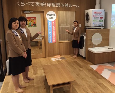 また、ガステラスには電気エアコンとガス温水床暖房の体験ルームがあります。