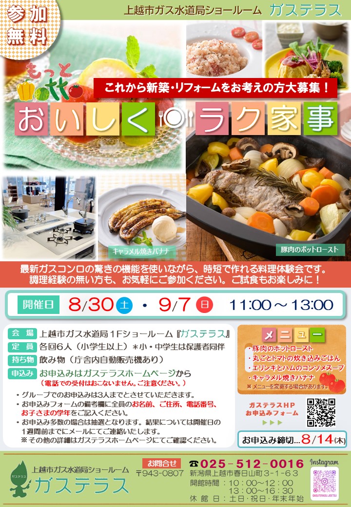 イベント情報 2025年7月15日 「もっとおいしくラク家事」8月・9月分参加者を募集しています!